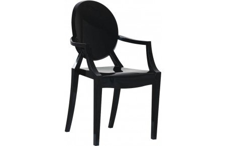 Cadeira de uma só peça obtida por injeção de policarbonato translúcido ou preto.Esta cadeira faz parte da família Ghost tendo como diferença os braços.