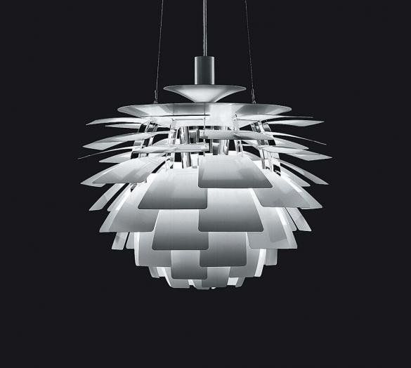 Candeeiro de tecto formado por 72 folhas de aluminio iluminando a 360º não se podendo ver directamente a fonte de luz pois é direccionada e reflectida nas folhas iluminando todo o candeeiro.