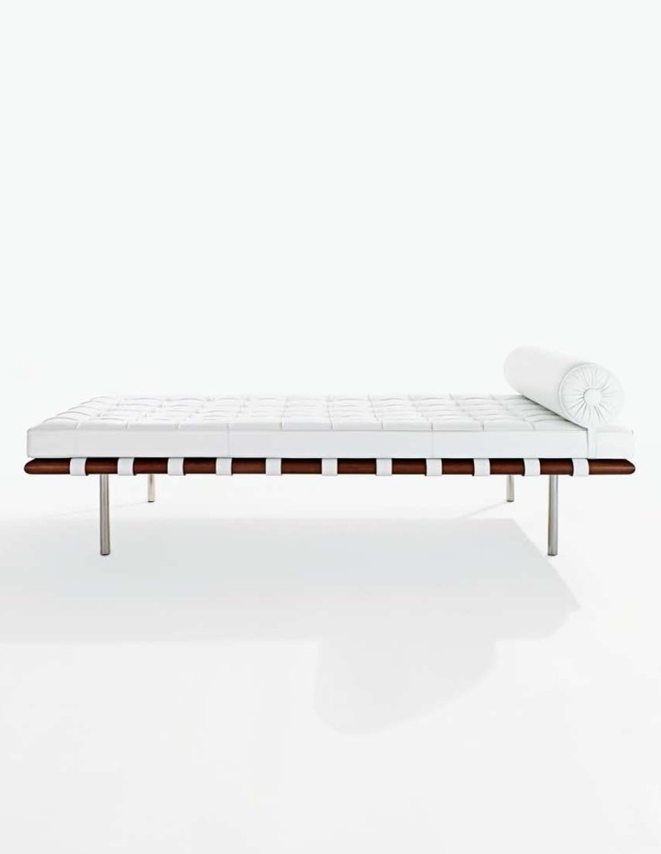 Daybed Mies 1.045,50 € Desconto de %. Partilhar Comprar Contactar Inspirado em Ludwig Mies Van Der Rohe Chaise Longue forrada a pele com interior em espuma de poliuretano de alta densidade.Estrutura de madeira com pés metálicos inoxidavéis.Cor:Preto ou BrancoDimensão: 198x98x64/42 cm