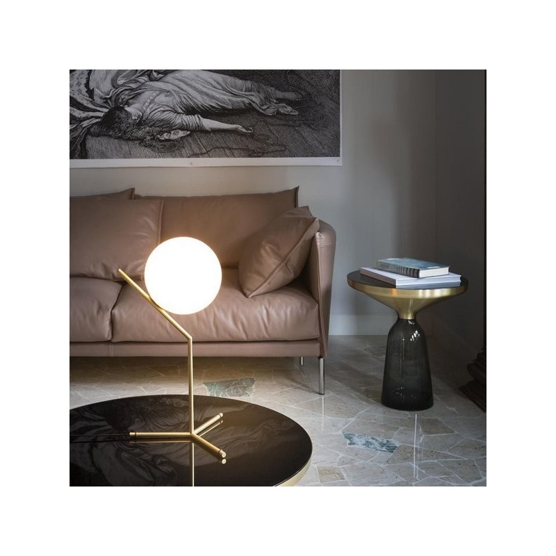 Candeeiro de mesa IC 250,00 € Desconto de %. Partilhar Comprar Contactar O design do IC Lights é composto por um abajur de vidro soprado esférico e uma estrutura de metal leve. O vidro translúcido da sombra distribui a luz uniformemente em qualquer cômodo, proporcionando uma luz suave e agradável. Material: Brass/GlassLight source: E27Power: Max 5WWeight: 2kgFinishes: BrassProcess: Polished/Blown glassDiffuser Material:Hand blown glassGlass Options: OpalControl method: push button switch (not dimmable) Tags ic