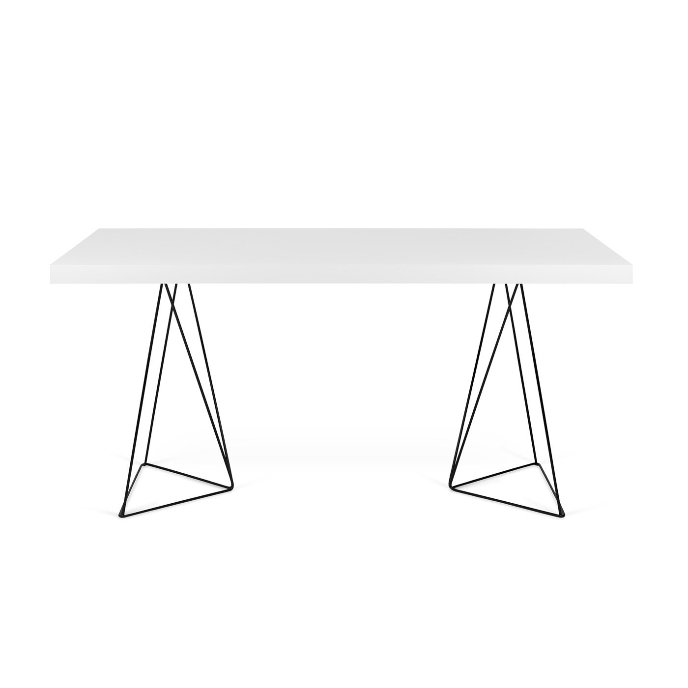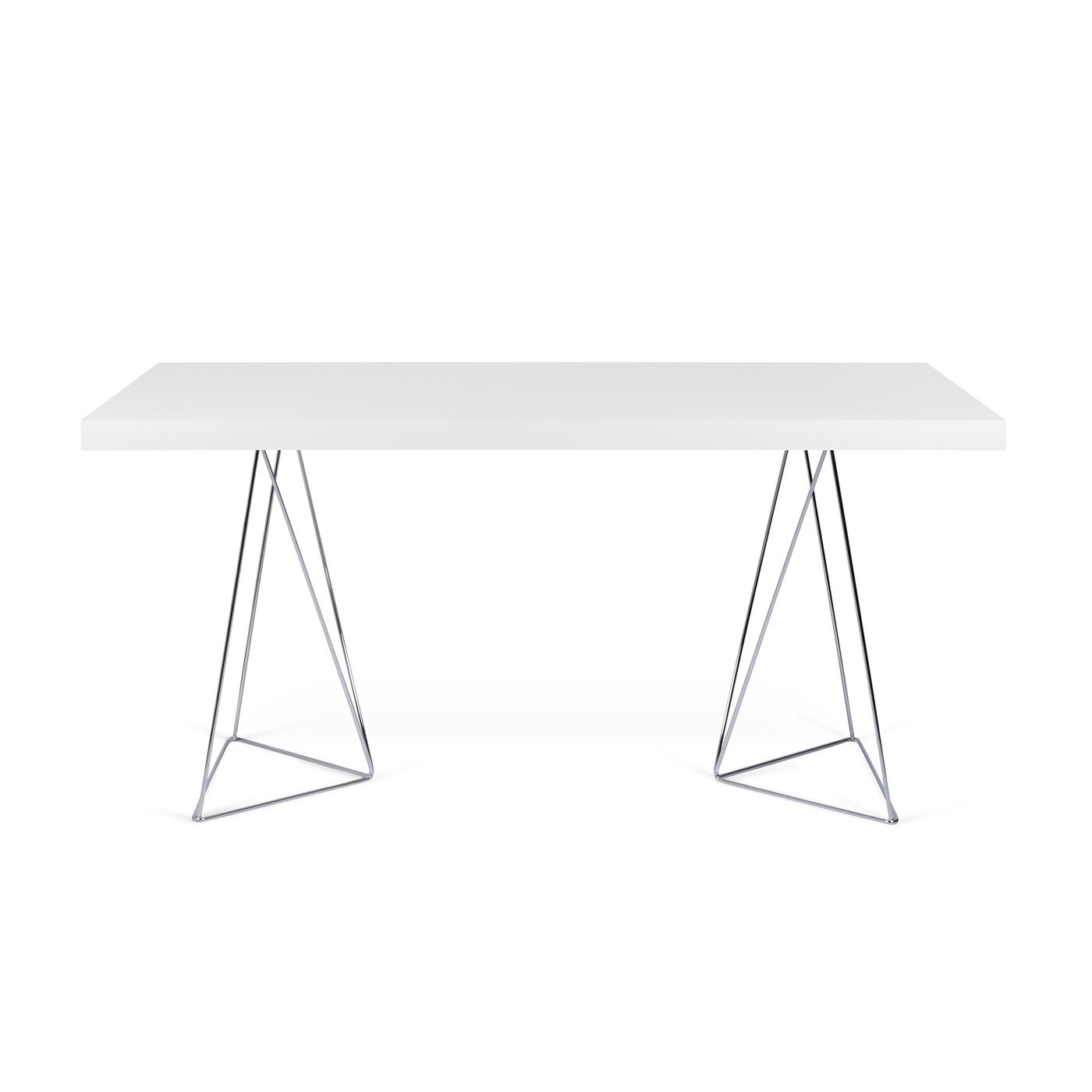 • Mesa branca moderna com pernas triangulares de metal