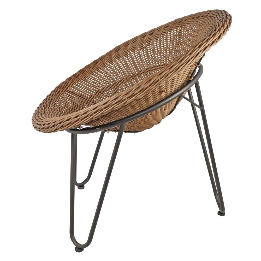 Ynu 180,00 € Desconto de %. Partilhar Comprar Contactar Cadeira de estilo nórdico com estrutura de haste de aço com acabamento preto e assento de vime sintético.Medidas: Ø76x82x85 cm